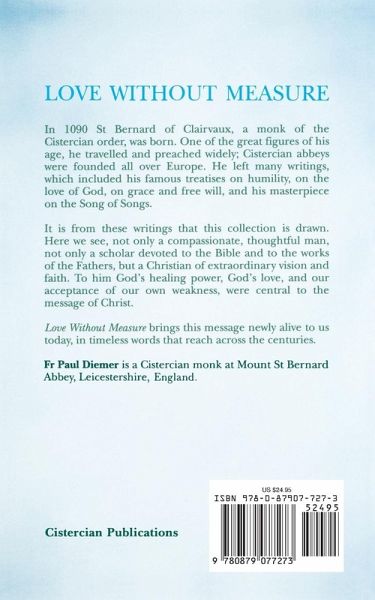 In 1090 St. Bernard of Clairvaux, a monk of the Cistercian order, was born. One of the great figures of his age, he travelled and preached widely; Cistercian abbeys were founded all over Europe. He left many writings, which included his famous treatises on humility, on the love of God, on grace and free will, and his masterpiece on the Song of Songs. It is from these writings that this collection is drawn. Here we see, not only a compassionate, thoughtful man, not only a scholar devoted to the Bible and to the works of the Fathers, but a Christian of extraordinary vision and faith. To him God's healing power, God's love, and our acceptance of our own weakness, were central to the message of Christ.