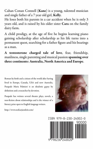 Cahan Conan Connell (Kane) is a young, talented musician and single father of a 7 year old girl, Kelly. He loses both his parents in a car accident when he is only 3 years old, and is raised by his older sister Cara on the family dairy farm. A child prodigy, at the age of five he begins learning piano gaining scholarship after scholarship as his life turns into a permanent quest, searching for a father figure and his bearings as a man. A testosterone charged tale of love, fear, friendship, manliness, single parenting and musical passion spanning over three continents: Australia, North America and Europe.