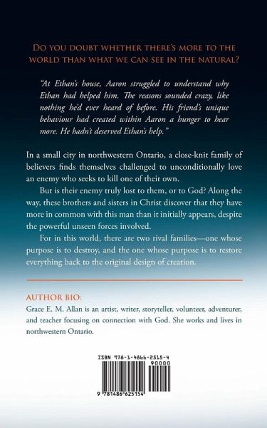 Do you doubt whether there's more to the world than what we can see in the natural?"At Ethan's house, Aaron struggled to understand why Ethan had helped him. The reasons sounded crazy, like nothing he'd ever heard of before. His friend's unique behaviour had created within Aaron a hunger to hear more. He hadn't deserved Ethan's help." In a small city in northwestern Ontario, a close-knit family of believers finds themselves challenged to unconditionally love an enemy who seeks to kill one of their own. But is their enemy truly lost to them, or to God? Along the way, these brothers and sisters in Christ discover that they have more in common with this man than it initially appears, despite the powerful unseen forces involved. For in this world, there are two rival families-one whose purpose is to destroy, and the one whose purpose is to restore everything back to the original design of creation.