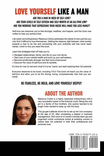 LOVE YOURSELF LIKE A MAN Are you a man in need of self-love? Do you want to raise your levels of self-esteem and self-worth? Are you worried that expressing your needs will make you less manly? Self-love can empower you to feel stronger, healthier, and happier, and this book was written to help you achieve that. After her successful book about self-love for women, life coach Rebecca Collins has now turned to the needs of men and the difficulties they face in loving themselves. There has never been a more confusing time for men, who are struggling to find their balance between being 'manly' and expressing their authentic self. This book holds the key to changing all of that. Do you want to learn how to navigate relationships, family, and life on your own terms? Do you want to take care of your mental health and build up your self-esteem? Do you want to become emotionally stronger and feel more empowered? In this book, you will discover the value of self-love and find strategies to help you: Understand why being told not to cry or show emotions as a boy may be stopping you from reaching your full potential as a human being. Gain insights into why the way you were raised doesn't have to define you today or in the future. Get in touch with inner needs and begin to embrace the loving, compassionate man that you are. Learn how to decode past traumas which are harming you and those around you. Raise your levels of self-esteem and bring self-love into every aspect of your life. Self-love isn't just a woman thing - it's something everyone deserves, including YOU! This book takes you through the tools you need to begin nurturing your emotional, mental, physical and spiritual health, and self-love is at the heart of that. Be fearless, be bold, and love yourself deeply. "At last! A book about self-love for men that recognizes their wonderful strengths and amazing qualities!"