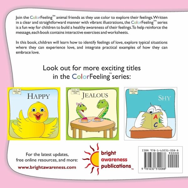 Join the COLORFEELING animal friends as they use color to explore their feelings. Written in a clear and straightforward manner with vibrant illustrations, the COLORFEELING series is a fun way for children to build a healthy awareness of their feelings. To help reinforce the message, each book contains interactive exercises and worksheets. In this book, children will learn how to identify feelings of love, explore typical situations where they can experience love, and integrate practical examples of how they can embrace love.