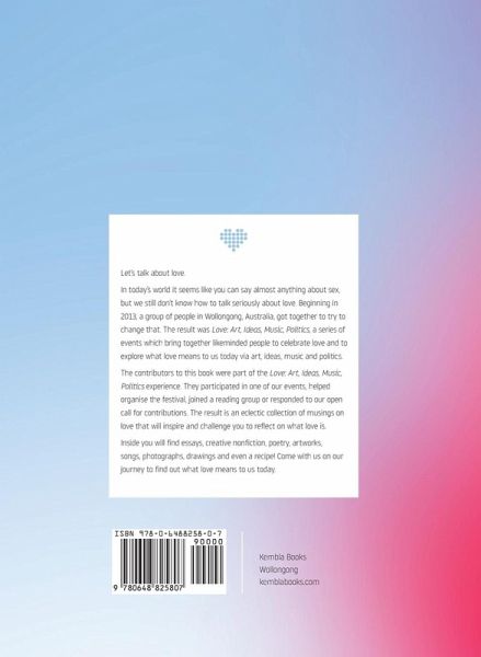 Beginning in 2013, a group of people in Wollongong, Australia, got together to talk about love. The result was Love: Art, Ideas, Music, Politics, a series of events which bring together like-minded people to celebrate love and to explore what love means to us today via art, ideas, music and politics. The contributors to this book were part of the Love: Art, Ideas, Music, Politics experience. Most were involved in the love festivals, some were members of the organising collective, some had attended the love reading groups, some had facilitated workshops, and others had only just heard of the love group and/or the festivals via the call for contributions to the book. The result is an eclectic collection of musings on love that will inspire and challenge you to reflect on what love is. It includes essays, creative nonfiction, poetry, artworks, songs, photographs and drawings. This book invites readers on a journey to find out what love means to us today.