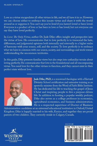 Love as a virtue encapsulates all other virtues in life, and we all have it in us. However, we can choose either to embrace this innate virtue and share it with the world around us or suppress it. You can't say you've lived if you haven't loved or been loved. Everyone is a product of love or has been in love or has loved, but not everyone can say they have loved perfectly. In Love: The Only Virtue, author Dr. Jude Dike offers insight and perspective into the virtue of love. He communicates that to love perfectly is to transcend the hate, differences, and judgmental opinions both internally and externally to a higher realm of harmony with your source, self, and the society. To love perfectly is to embrace what we have in common with our source, society, and surroundings and work toward understanding the uncommon territories. In this guide, Dike presents familiar views but also steps into unfamiliar terrain about loving perfectly. He communicates that love is the foundational and all-encompassing virtue. You need love for the other virtues to function, and they cannot exist in their perfect state without love.