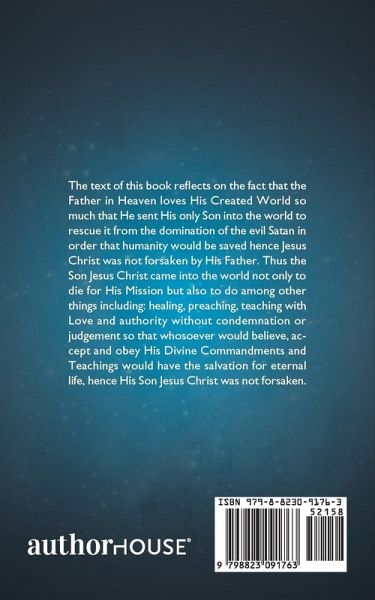 The text of this book refl ects on the fact that the Father in Heaven loves His Created World so much that He sent His only Son into the world to rescue it from the domination of the evil Satan in order that humanity would be saved hence Jesus Christ was not forsaken by His Father. Thus the Son Jesus Christ came into the world not only to die for His Mission but also to do among other things including: healing, preaching, teaching with Love and authority without condemnation or judgement so that whosoever would believe, accept and obey His Divine Commandments and Teachings would have the salvation for eternal life, hence His Son Jesus Christ was not forsaken.