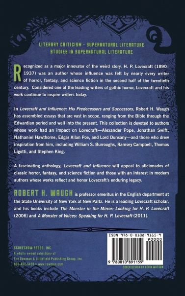 Recognized as a major innovator in the weird story, H. P. Lovecraft (1890-1937) was an author whose influence was felt by nearly every writer of horror, fantasy, and science fiction in the second half of the twentieth century. In H. P. Lovecraft and Influence: His Predecessors and Successors, Robert H. Waugh has assembled a collection of essays that not only examine the effect Lovecraft's work has had-and continues to have-on writers, but how Lovecraft's writing was shaped by those who preceded him. Chapters in this collection are devoted to authors such as Jonathan Swift, Nathaniel Hawthorne, Edgar Allan Poe, Lord Dunsany, Ramsey Campbell, Thomas Ligotti, Stephen King and more.