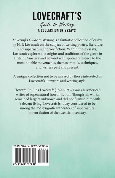 "Lovecraft's Guide to Writing" is a fantastic collection of essays by H. P. Lovecraft on the subject of writing poetry, literature and supernatural horror fiction. Within these essays, Lovecraft explores the origins and traditions of the genre in Britain, America and beyond with special reference to the most notable movements, themes, motifs, techniques, and writers past and present. A unique collection not to be missed by those interested in Lovecraft's literature and writing style. Howard Phillips Lovecraft (1890-1937) was an American writer of supernatural horror fiction. Though his works remained largely unknown and did not furnish him with a decent living, Lovecraft is today considered to be among the most significant writers of supernatural horror fiction of the twentieth century. Contents include: "Supernatural Horror in Literature", "The Allowable Rhyme", "Metrical Regularity", "Literary Composition", and "Notes on Writing Weird Fiction". Other notable works by this author include: "The Call of Cthulhu", "The Rats in the Walls", and "The Shadow Over Innsmouth". Read & Co. Books is publishing this brand new collection of essays complete with a specially commissioned biography of the author.
