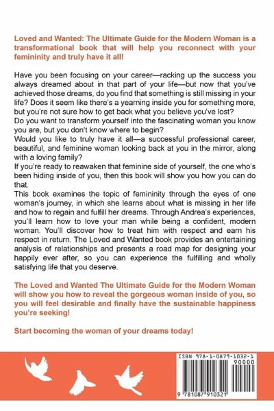 ¿Loved and Wanted: The Ultimate Guide for the Modern Woman is a transformational book that will help you reconnect with your femininity and truly have it all!¿ Have you been focusing on your career-racking up the success you always dreamed about in that part of your life-but now that you've achieved those dreams, do you find that something is still missing in your life? Does it seem like there's a yearning inside you for something more, but you're not sure how to get back what you believe you've lost? Do you want to transform yourself into the fascinating woman you know you are, but you don't know where to begin? It's easy to lose your femininity amidst the hustle and bustle of our modern world, and particularly while you're working so hard to establish yourself professionally; however, you shouldn't have to sacrifice your femininity to have a career. It's time to create a new model that unleashes your fascinating womanhood, even as you strive to achieve your professional goals. This book offers tips on how to express your femininity in every aspect of your life. Would you like to truly have it all-a successful professional career, beautiful, and feminine woman looking back at you in the mirror, along with a loving family? If you're ready to reawaken that feminine side of yourself, the one who's been hiding inside of you, then this book will show you how you can do that. This book examines the topic of femininity through the eyes of one woman's journey, in which she learns about what is missing in her life and how to regain and fulfill her dreams. Through Andrea's experiences, you'll learn how to love your man while being a confident, modern woman. You'll discover how to treat him with respect and earn his respect in return. The Loved and Wanted book provides an entertaining analysis of relationships and presents a road map for designing your happily ever after, so you can experience the fulfilling and wholly satisfying life that you deserve. Loved and Wanted was born from years of experience as a life coach talking to men and women about what they wanted in their partners. Many of the men expressed what they believed was missing in the modern women they knew. Likewise, many of the women also expressed an interest in redefining their feminine side and restoring the part of them that made them feel sexy and desired when they were young and their whole life was ahead of them. That's the reason I created this book: to help those women find that sensual, nurturing woman inside themselves and bring her out again, so she can help create their ideal life. The Loved and Wanted The Ultimate Guide for the Modern Woman will show you how to reveal the gorgeous woman inside of you, so you will feel desirable and finally have the sustainable happiness you're seeking! Start becoming the woman of your dreams today!