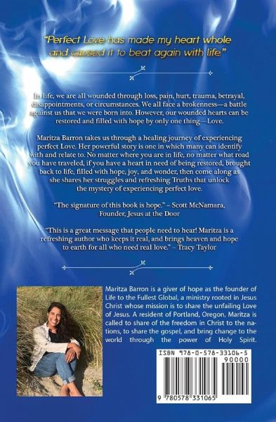 In life, we are all wounded through loss, pain, hurt, trauma, betrayal, disappointments, or circumstances. We all face a brokenness-a battle against us that we were born into. However, our wounded hearts can be restored and filled with hope by only one thing-Love. Maritza Barron takes us through a healing journey of experiencing perfect Love. Her powerful story is one in which many can identify with and relate to. No matter where you are in life, no matter what road you have traveled, if you have a heart in need of being restored, brought back to life, filled with hope, joy, and wonder, then come along as she shares her struggles and refreshing Truths that unlock the mystery of experiencing perfect love. "Perfect Love has made my heart whole and caused it to beat again with life."