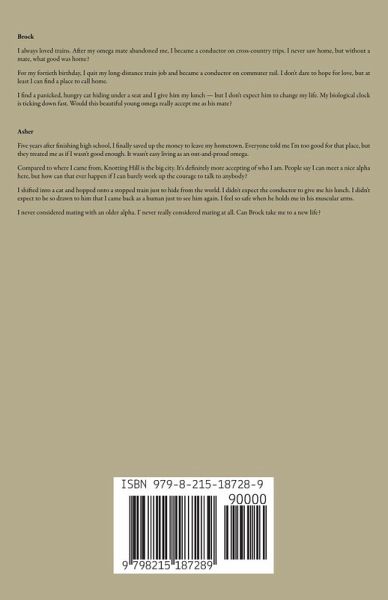 Brock I always loved trains. After my omega mate abandoned me, I became a conductor on cross-country trips. I never saw home, but without a mate, what good was home? For my fortieth birthday, I quit my long-distance train job and became a conductor on commuter rail. I don't dare to hope for love, but at least I can find a place to call home. I find a panicked, hungry cat hiding under a seat and I give him my lunch — but I don't expect him to change my life. My biological clock is ticking down fast. Would this beautiful young omega really accept me as his mate? Asher Five years after finishing high school, I finally saved up the money to leave my hometown. Everyone told me I'm too good for that place, but they treated me as if I wasn't good enough. It wasn't easy living as an out-and-proud omega. Compared to where I came from, Knotting Hill is the big city. It's definitely more accepting of who I am. People say I can meet a nice alpha here, but how can that ever happen if I can barely work up the courage to talk to anybody? I shifted into a cat and hopped onto a stopped train just to hide from the world. I didn't expect the conductor to give me his lunch. I didn't expect to be so drawn to him that I came back as a human just to see him again. I feel so safe when he holds me in his muscular arms. I never considered mating with an older alpha. I' never really considered mating at all. Can Brock take me to a new life?