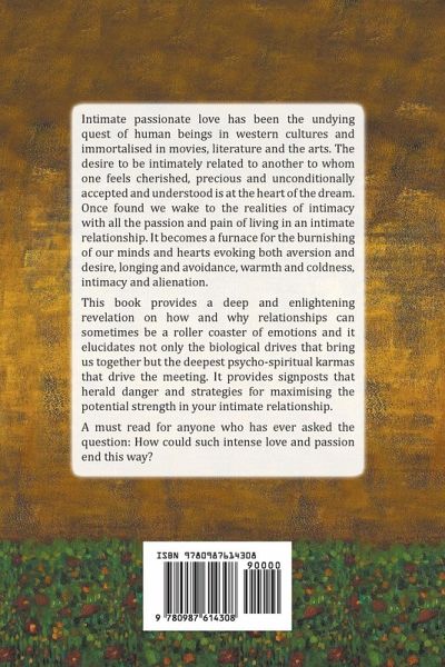 Intimate passionate love has been the undying quest of human beings in western cultures and immortalised in movies, literature and the arts. The desire to be intimately related to another to whom one feels cherished, precious and unconditionally accepted and understood is at the heart of the dream. Once found we wake to the realities of intimacy with all the passion and pain of living in an intimate relationship. It becomes a furnace for the burnishing of our minds and hearts evoking both aversion and desire, longing and avoidance, warmth and coldness, intimacy and alienation. This book provides a deep and enlightening revelation on how and why relationships can sometimes be a roller coaster of emotions and it elucidates not only the biological drives that bring us together but the deepest psycho-spiritual karmas that drive the meeting. It provides signposts that herald danger and strategies for maximising the potential strength in your intimate relationship. A must read for anyone who has ever asked the question: How could such intense love and passion end this way?
