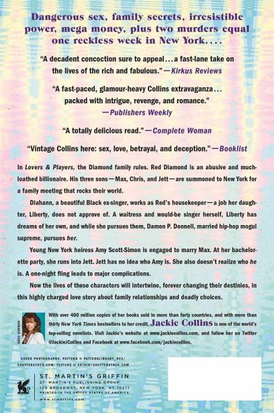 Jackie Collins is back-in this deliciously scandalous novel, Lovers & Players. And she's giving her readers a revealing look into the private realms of her fabulously rich and sexy cast of characters. Dangerous sex, family secrets, irresistible power, mega money and two murders equal one reckless week in New York. Lovers and Players takes you on a high-powered trip from Park Avenue to Brooklyn. In Lovers and Players, the Diamond family's power extends from coast to coast. Max-a real estate tycoon; Chris-a Hollywood lawyer; and Jett-a young, handsome ex-druggie, now a successful model in Italy, must finally come face to face with their tyrannical father, Red, who has been controlling their world for as long as they can remember. Working as Red's housekeeper is Diahann, a beautiful black ex-singer. Her stunning bi-racial nineteen-year-old daughter, Liberty-a waitress who is a would-be singer herself-does not approve of her mother working as a housekeeper. Liberty has dreams of her own and while she pursues them, Damon P. Donnell, married hip-hop mogul supreme, pursues her. Amy Scott-Simon, a beguilingly pretty young New York heiress, in engaged to marry Max Diamond. At her bachelorette party she runs into Jett, Max's younger brother. Jet has no idea who Amy is. She also doesn't realize who he is. A one-night fling leads to major complications. As the lives of these characters intertwine, power, money, fame and love are the ties that bind-emotionally and otherwise-in this highly charged love story about family relationships and deadly choices.