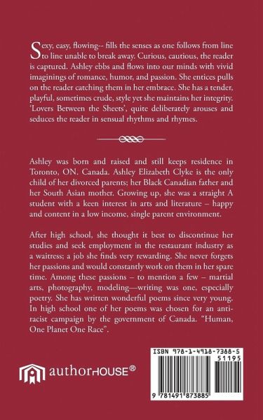 Summary of the Work ________________________________________ Sexy, easy, flowing-- fills the senses as one follows from line to line unable to break away. Curious, cautious, the reader is captured. Ashley ebbs and flows into our minds with vivid imaginings of romance, humor, and passion. She entices pulls on the reader catching them in her embrace. She has a tender, playful, sometimes crude, style yet she maintains her integrity. 'Lovers Between the Sheets', quite deliberately arouses and seduces the reader in sensual rhythms and rhymes.
