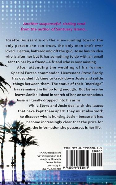 Another steamy read from the author of Sanctuary Island... A cryptic email with a coded attachment from an old friend sends Josie Boussard running for her life...and to the man she loved and left behind. Steve Brody married the dark-haired journalist before his Special Forces team was deployed to Afghanistan. But the marriage was over before it began. Can they resolve the issues that have kept them apart while they work to discover who is hunting Josie? Because it has become increasingly clear that the price for the information she possesses is her life.