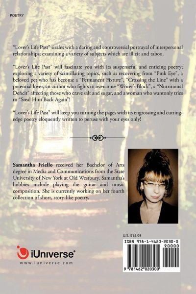 "Lover's Life Past" sizzles with a daring and controversial portrayal of interpersonal relationships; examining a variety of subjects which are illicit and taboo. "Lover's Life Past" will fascinate you with its suspenseful and enticing poetry; exploring a variety of scintillating topics, such as recovering from "Pink Eye", a beloved pet who has become a "Permanent Fixture", "Crossing the Line" with a potential lover, an author who ¿ghts to overcome "Writer's Block", a "Nutritional De¿cit" äecting those who crave salt and sugar, and a woman who wantonly tries to "Steal Him Back Again"! "Lover's Life Past" will keep you turning the pages with its engrossing and cutting-edge poetry eloquently written to peruse with your eyes only!