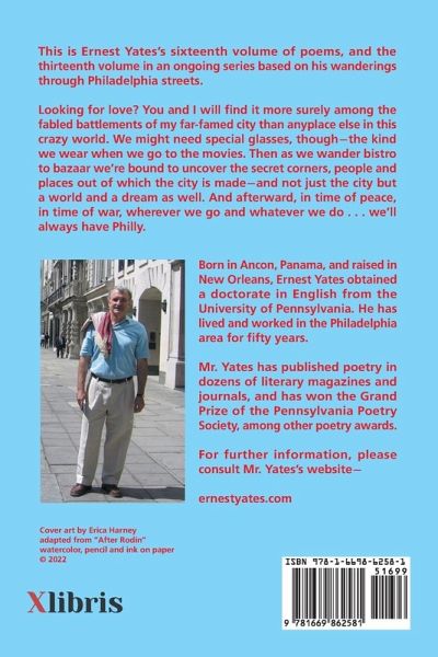 This is Ernest Yates's sixteenth volume of poems, and the thirteenth volume in an ongoing series based on his wanderings through Philadelphia streets. Looking for love? You and I will find it more surely among the fabled battlements of my far-famed city than anyplace else in this crazy world. We might need special glasses, though?the kind we wear when we go to the movies. Then as we wander bistro to bazaar we're bound to uncover the secret corners, people and places out of which the city is made?and not just the city but a world and a dream as well. And afterward, in time of peace, in time of war, wherever we go and whatever we do . . . we'll always have Philly.