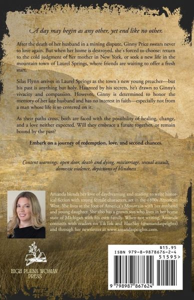 A day may begin as any other, yet end like no other.After the death of her husband in a mining dispute, Ginny Price swears never to love again. But when her home is destroyed, she's forced to choose: return to the cold judgment of her mother in New York, or seek a new life in the mountain town of Laurel Springs, where friends are waiting to offer a fresh start.Silas Flynn arrives in Laurel Springs as the town's new young preacher-but his past is anything but holy. Haunted by his secrets, he's drawn to Ginny's vivacity and compassion. However, Ginny is determined to honor the memory of her late husband and has no interest in faith-especially not from a man whose life is so centered on it.As their paths cross, both are faced with the possibility of healing, change, and a love neither expected. Will they embrace a future together, or remain bound by the past?Embark on a journey of redemption, love, and second chances.Content Warnings: open door, death and dying, miscarriage, sexual assault, domestic violence, depictions of blindness