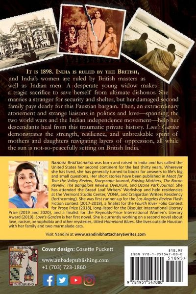 "It is 1898. India is ruled by the British, and India's women are ruled by British masters as well as Indian men. A desperate young widow sacrifices her firstborn child to save herself from ultimate dishonor. She marries a stranger, but her damaged second family pays dearly for this Faustian bargain. Then, an extraordinary atonement, strange liaisons in politics and love-spanning the two world wars and the Indian independence movement-help her descendants heal from this traumatic private history. Love's Garden demonstrates the strength, resilience, and unbreakable spirit of mothers and daughters navigating layers of oppression, all while the sun is not-so-peacefully setting on British India"--