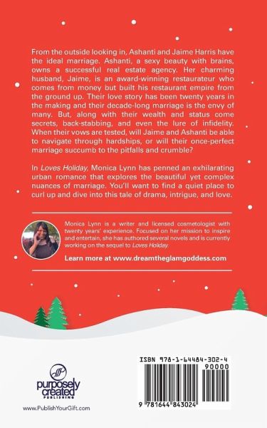 From the outside looking in, Ashanti and Jamie Harris have the ideal marriage. Ashanti, a sexy beauty with brains, owns a successful real estate agency. Her charming husband, Jamie, is an award-winning restaurateur who comes from money but built his restaurant empire from the ground up. Their love story has been twenty years in the making and their decade-long marriage is the envy of many. But, along with their wealth and status come secrets, back-stabbing, and even the lure of infidelity. When their vows are tested, will Jamie and Ashanti be able to navigate through hardships, or will their once-perfect marriage succumb to the pitfalls and crumble? In Loves Holiday, Monica Wright has penned an exhilarating urban romance that explores the beautiful yet complex nuances of marriage. You'll want to find a quiet place to curl up and dive into this tale of drama, intrigue, and love.