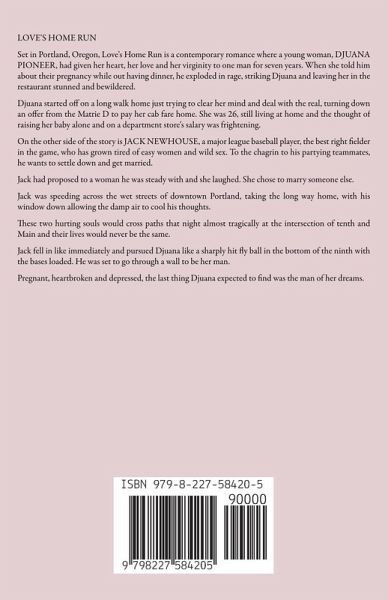 LOVE'S HOME RUN Set in Portland, Oregon, Love's Home Run is a contemporary romance where a young woman, DJUANA PIONEER, had given her heart, her love and her virginity to one man for seven years. When she told him about their pregnancy while out having dinner, he exploded in rage, striking Djuana and leaving her in the restaurant stunned and bewildered. Djuana started off on a long walk home just trying to clear her mind and deal with the real, turning down an offer from the Matrie D to pay her cab fare home. She was 26, still living at home and the thought of raising her baby alone and on a department store's salary was frightening. On the other side of the story is JACK NEWHOUSE, a major league baseball player, the best right fielder in the game, who has grown tired of easy women and wild sex. To the chagrin to his partying teammates, he wants to settle down and get married. Jack had proposed to a woman he was steady with and she laughed. She chose to marry someone else. Jack was speeding across the wet streets of downtown Portland, taking the long way home, with his window down allowing the damp air to cool his thoughts. These two hurting souls would cross paths that night almost tragically at the intersection of tenth and Main and their lives would never be the same. Jack fell in like immediately and pursued Djuana like a sharply hit fly ball in the bottom of the ninth with the bases loaded. He was set to go through a wall to be her man. Pregnant, heartbroken and depressed, the last thing Djuana expected to find was the man of her dreams.