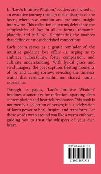 In "Love's Intuitive Wisdom," readers are invited on an evocative journey through the landscapes of the heart, where raw emotion and profound insight intertwine. This collection of poems delves into the complexities of love in all its forms-romantic, platonic, and self-love-illuminating the nuances that define our most cherished connections. Each poem serves as a gentle reminder of the intuitive guidance love offers us, urging us to embrace vulnerability, foster compassion, and cultivate understanding. With lyrical grace and vivid imagery, the poet captures fleeting moments of joy and aching sorrow, revealing the timeless truths that resonate within our shared human experience. Through its pages, "Love's Intuitive Wisdom" becomes a sanctuary for reflection, sparking deep contemplation and heartfelt resonance. This book is not merely a collection of verses; it is a celebration of love's power to heal, inspire, and transform. Let these words wrap around you like a warm embrace, guiding you to trust the whispers of your own heart.