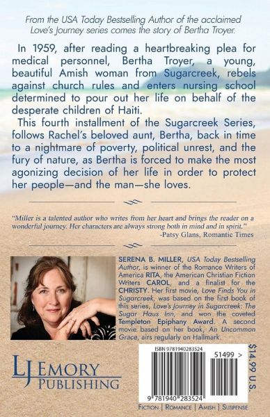 In 1959, after reading a heartbreaking plea for medical personnel, Bertha Troyer, a young beautiful Amish woman from Sugarcreek, rebels against church rules and enters nursing school determined to pour out her life on behalf of the desperate children of Haiti. This fourth installment of the Sugarcreek series, follows Rachel's beloved aunt, Bertha, back in time to a nightmare of poverty, political unrest, and the fury of nature, as Bertha is forced to make the most agonizing decision of her life in order to protect her people - and the man - she loves.
