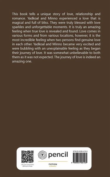This book tells a unique story of love, relationship and romance. Yadkoal and Minno experienced a love that is magical and full of bliss. They were truly blessed with love sparkles and unforgettable moments. It is truly an amazing feeling when true love is revealed and found. Love comes in various forms and from various locations, however, it is the most incredible feeling when two persons find genuine love in each other. Yadkoal and Minno became very excited and were bubbling with an unexplainable feeling as they began their journey of love. It was somewhat unbelievable to both them as it was not expected. The journey of love is indeed an amazing one.