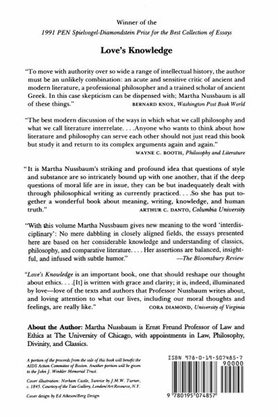 This volume brings together Martha Nussbaum's published papers, some revised for this collection, on the relationship between literature and philosophy, especially moral philosophy. It also includes two new essays and a substantial introduction.