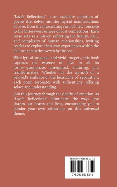 "Love's Reflections" is an exquisite collection of poems that delves into the myriad manifestations of love, from the intoxicating rush of new romance to the bittersweet echoes of lost connections. Each verse acts as a mirror, reflecting the beauty, pain, and complexity of human relationships, inviting readers to explore their own experiences within the delicate tapestries woven by the poet. With lyrical language and vivid imagery, this book captures the essence of love in all its forms-passionate, unrequited, enduring, and transformative. Whether it's the warmth of a beloved's embrace or the heartache of separation, each poem resonates with authenticity, offering solace and understanding. Join this journey through the depths of emotion, as "Love's Reflections" illuminates the ways love shapes our hearts and lives, encouraging you to ponder your own reflections on this universal theme.