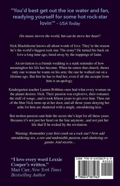 His music moves the world, but can he move her heart? Nick Blackthorne knows all about words of love. They're the reason he's the world's biggest rock star. The irony? He turned his back on love a long time ago, lured away by the trappings of fame. An invitation to a friends wedding is a stark reminder of how meaningless his life has become. When he enters that church, theres only one woman he wants on his arm; the one he walked out on a lifetime ago. But first he has to find her, even if all she accepts from him is an apology. Kindergarten teacher Lauren Robbins once had what every woman on the planet desires: Nick. Their passion was explosive, their romance the stuff of songs...and it took fifteen years to get over him. Then out of the blue Nick turns up at her door, and all those years denying her ache for him are shattered with a single, smouldering kiss. But molten passion cant hide the secret she's kept for all these years. Because it's not just her heart on the line anymore...and not just her life that'll be rocked by the revelation. Warning: Remember your first crush on a rock star? Now add smouldering sex, a raw and undeniable passion, soul-shattering orgasms. And secrets...