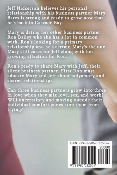 Jeff Nickerson believes his personal relationship with his business partner Mary Bates is strong and ready to grow now that he's back in Cascade Bay. Mary is dating her other business partner Ron Bailey who she has a lot in common with. Ron's looking for a primary relationship and he's certain Mary's the one. Mary still cares for Jeff along with her growing affection for Ron. Ron's ready to share Mary with Jeff, their silent business partner. First Ron must educate Mary and Jeff about polyamory and shared relationships. Can three business partners grow into three in love when they mix love, sex, and work? Will uncertainty and moving outside their individual comfort zones stop them from trying?