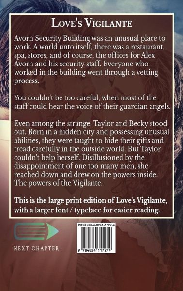 Avorn Security Building was an unusual place to work. A world unto itself, there was a restaurant, spa, stores, and of course, the offices for Alex Avorn and his security staff. Everyone who worked in the building went through a vetting process. You couldn't be too careful, when most of the staff could hear the voice of their guardian angels. Even among the strange, Taylor and Becky stood out. Born in a hidden city and possessing unusual abilities, they were taught to hide their gifts and tread carefully in the outside world. But Taylor couldn't help herself. Disillusioned by the disappointment of one too many men, she reached down and drew on the powers inside. The powers of the Vigilante. This is the large print edition of Love's Vigilante, with a larger font / typeface for easier reading.