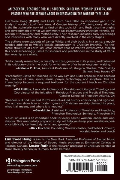 Lovin' on Jesus: A Concise History of Contemporary Worship is a compact--but thorough--history of changes in North American Protestant worship that occurred in the second half of the twentieth century and that came to be known as "contemporary worship." This scholarly but accessible work reveals a fascinating and complex lineage, which led to the worship forms that are now so common in many Christian worship services across the globe. Authors Lim and Ruth uncover the rise of this term itself in the early 1990s as the pivot point in the phenomenon's history. They show how "contemporary worship" has multiple points of origin, and how new ways of worship developed along many different lines. The authors trace the rise of the term in the early 1990s, pointing to a new phase in its history: promotion and adoption by mainline congregations. The book documents this phase, as well as the earlier phases, with original source material including personal interviews. Lovin' on Jesus also tells the story of the ongoing evolution of contemporary worship both within and beyond mainline congregations. It is important to note that the story of contemporary worship includes not only music, but also its other features.