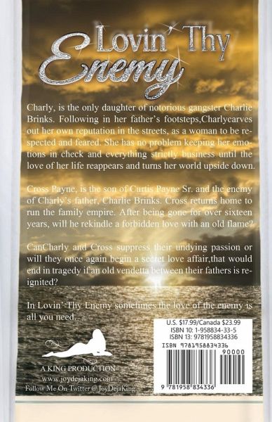 Charly is the only daughter of notorious gangster Charlie Brinks. Following in her father's footsteps, Charly carves out her own reputation in the streets, as a woman to be respected and feared. She has no problem keeping her emotions in check and everything strictly business until the love of her life reappears and turns her world upside down. Cross Payne is the son of Curtis Payne Sr. and the enemy of Charly's father, Charlie Brinks. Cross returns home to run the family empire. After being gone for over sixteen years, will he rekindle a forbidden love with an old flame? Can Charly and Cross suppress their undying passion, or will they once again begin a secret love affair, that would end in tragedy if an old vendetta between their fathers is reignited? In Lovin' Thy Enemy sometimes, the love of the enemy is all you need.