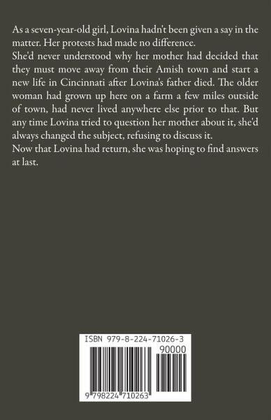 As a seven-year-old girl, Lovina hadn't been given a say in the matter. Her protests had made no difference. She'd never understood why her mother had decided that they must move away from their Amish town and start a new life in Cincinnati after Lovina's father died. The older woman had grown up here on a farm a few miles outside of town, had never lived anywhere else prior to that. But any time Lovina tried to question her mother about it, she'd always changed the subject, refusing to discuss it. Now that Lovina had return, she was hoping to find answers at last.