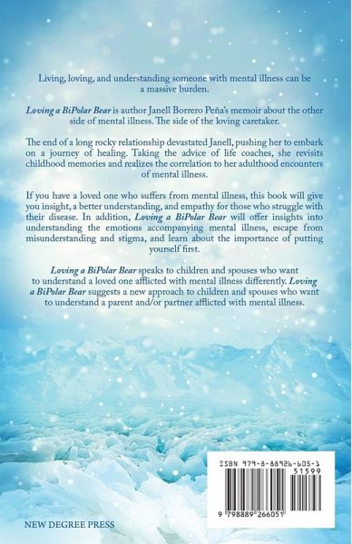 Living, loving, and understanding someone with mental illness can be a massive burden. Loving a BiPolar Bear is author Janell Borrero Pena's memoir about the other side of mental illness. The end of a long rocky relationship devastated Janell, pushing her to embark on a journey of healing. Taking the advice of life coaches, she revisits childhood memories and realizes the correlation to her adulthood encounters of mental illness. If you have a loved one who suffers from mental illness, this book will give you insight, a better understanding, and empathy for those who struggle with their disease. In addition, Loving a BiPolar Bear will offer insights into understanding the emotions accompanying mental illness, escape from misunderstanding and stigma, and learn about the importance of putting yourself first. Loving a BiPolar Bear speaks to children and spouses who want to understand a loved one afflicted with mental illness differently. Loving a BiPolar Bear suggests a new approach to children and spouses who want to understand a parent and/or partner afflicted with mental illness.