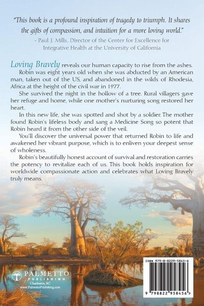 Loving Bravely reveals our human capacity to rise from the ashes. Robin was eight years old when she was abducted by an American man, taken out of the US, assaulted, and abandoned in the wilds of Rhodesia, Africa at the height of the civil war in 1977. She survived the night in the hollow of a tree. Rural villagers gave her refuge and home, where one mother's nurturing song restored her heart. In this new life, she was spotted and shot by a soldier. The mother found Robin's lifeless body and sang a Medicine Song so potent that Robin heard it from the other side of the veil. You'll discover the universal power that miraculously returned Robin to life and awakened her vibrant purpose, which is to enliven people's deepest sense of wholeness. Forty years later, longing for reconnection, Robin journeys back to now Zimbabwe, Africa. She learns a grandmother who hid her during the war from threat of discovery was told by a neighbor, "Don't bother with her, it is too dangerous." The grandmother told them, "I won't throw her away, she is a living human being." Join Robin as she sings a hymn of praise for the people who saved her life. This beautifully honest account of survival and restoration carries the potency to revitalize each of us. This book holds inspiration for worldwide compassionate action and celebrates what Loving Bravely truly means.