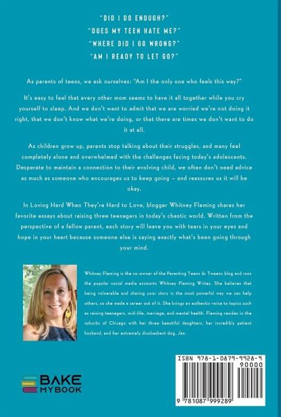 "Did I do enough?" "Does my teen hate me?" "Where did I go wrong?" "Am I ready to let go?" It's easy to feel that every other mom seems to have it all together while you cry yourself to sleep. Self-proclaimed experts give contradictory information that is irrelevant when your teenager acts like a different person each day. And we don't want to admit that we are worried we're not doing it right, that we don't know what we're doing, or that there are times we don't want to do it at all. As parents of teens, we ask ourselves: "Am I the only one who feels this way? As children grow up, parents stop talking about their struggles, and many feel completely alone and overwhelmed with the challenges facing today's adolescents. Desperate to maintain a connection to their evolving child, we often don't need advice as much as someone who encourages them to keep going-and reassures them it will be okay. In Loving Hard When They're Hard to Love, blogger Whitney Fleming shares her favorite essays about raising three teenagers in today's chaotic world. Written from the perspective of a fellow parent, each story will leave you with tears in your eyes and hope in your heart because someone else is saying exactly what's been going through your mind. The book covers the challenging parts of parenting adolescents, such as managing big emotions, navigating school and social issues, and learning to let go, but also the beautiful things simultaneously occurring, like watching them find their passions, take charge of their newfound independence, and move on to the next chapter. It's a must-read for anyone who wants to feel less alone in their parenting journey.
