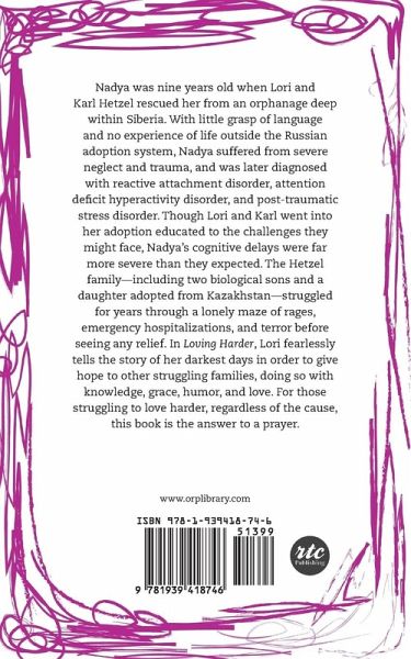 Nadya was nine years old when Lori and Karl Hetzel rescued her from an orphanage deep within Siberia. With little grasp of language and no experience of life outside the Russian adoption system, Nadya suffered from severe neglect and trauma, and was later diagnosed with reactive attachment disorder, attention deficit hyperactivity disorder, and post-traumatic stress disorder. Though Lori and Karl went into her adoption educated to the challenges they might face, Nadya's cognitive delays were far more severe than they expected. The Hetzel family-including two biological sons and a daughter adopted from Kazakhstan-struggled for years through a lonely maze of rages, emergency hospitalizations, and terror before seeing any relief. In Loving Harder, Lori fearlessly tells the story of her darkest days in order to give hope to other struggling families, doing so with knowledge, grace, humor, and love. For those struggling to love harder, regardless of the cause, this book is the answer to a prayer.