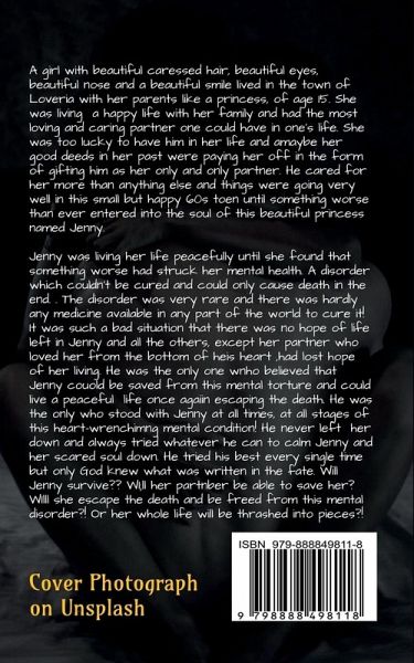 A girl with beautiful caressed hair, beautiful eyes, beautiful nose and a beautiful smile lived in the town of Loveria with her parents like a princess, of age 15. She was living a happy life with her family and had the most loving and caring partner one could have in one's life. She was too lucky to have him in her life and maybe her good deeds in her past life were paying her off in the form of gifting him in as her only and only partner. He cared for her more than anything else and things were going very well in this small but happy 60s town until something worse than ever entered into the soul of this beautiful princess named Jenny. Jenny was living her life peacefully until she found that something worse had struck her mental health. A disorder which couldn't be cured and could only cause death in the end.The disorder was very rare and there was hardly any medicine available in any part of the world to cure it! It was such a bad situation that there was no hope of life left in Jenny and all the others, except her partner who loved her from the bottom of his heart, had lost hope of her living. He was the only one who believed that Jenny could be saved from this mental torture and could live a peaceful life once again, escaping the death!! Will Jenny survive? Will her partner be able to save her? Will she escape the dead and be freed from this mental disorder?! Or will her whole life be thrashed into pieces?!