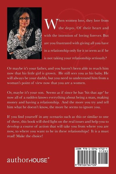When women love, they love from the depts. Of their heart and with the intention of loving forever. But are you frustrated with giving all you have in a relationship only for it to seem as if he is not taking your relationship seriously? Or maybe it’s your father, and you haven’t been able to reach him now that his little girl is grown. He still sees you as his baby. He will always be your daddy, but you need to understand him from a woman’s point of view now that you are a women. Or, maybe it’s your son. Seems as if since he has ‘hit that age’ he now all of a sudden knows everything about being a man, making money and having a relationship. And the more you try and tell him what he doesn’t know, the more he seems to ignore you. If you find yourself in any scenario such as this or similar to one of these, this book will shed light on the real issues and help you to develop a course of action that will take you from where you are now, to where you want to be in these relationships! It is a must read! Make the choice!