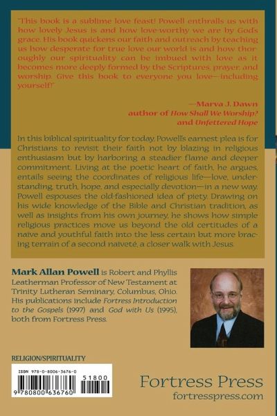 The essence of spirituality is loving God, says Powell. The Bible, the Talmud, and the Qu'ran all direct their followers not merely to believe in God, to trust God, to obey God, and to serve God but to love God. Can we learn to love God? In this biblical spirituality for today, Powell's earnest plea is for Christians to revisit their faith not by blazing in religious enthusiasm but by harboring a steadier flame and deeper commitment. Living at the poetic heart of faith, he argues, entails seeing the coordinates of religious life in a new way. Powell espouses the old-fashioned idea of piety. Drawing on his wide knowledge of the Bible and Christian tradition, as well as insights from his own journey, he shows how simple religious practices move us beyond the old certitudes of a nave and youthful faith into the less certain but more bracing terrain of a second navet, a closer walk with Jesus.