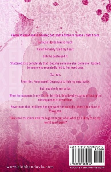 A friends-to-lovers second-chance romance from USA Today & WSJ bestseller Siobhan Davis. A stand-alone with an HEA and no cliffhanger. Lana I knew it would end in disaster, but I didn't listen to reason. I didn't care. Because I loved him so much. Kalvin Kennedy ruled my heart. Until he destroyed it. Shattered it so completely that I became someone else. Someone I loathed. Someone who repeatedly lied to her loved ones. So, I ran. From him. From myself. Desperate to hide my new reality. But I could only run so far. When he reappears in my life, I'm terrified. Unbelievably scared of facing the consequences of my actions. Never mind that I still love him and want him so badly-there's too much at stake now.How can I trust him with the biggest secret of all when he's likely to rip my world apart again? Kalvin Lana was always far too good for me. Everyone knew it but her. I tried to stay away, but I was weak. And I hurt her. Crushed her until she barely resembled herself. Forced her to follow a path she would never have willingly chosen. And then she was gone. And my world has never felt as empty, as lonely. She begged me to stay away. Not to find her. To forget she ever existed. But that's like asking me to slice my heart in two and toss half aside. I've never believed in fate, but when I rock up to the University of Florida, I'm ready to eat my words. Because she's here. Like I hoped she would be. And I'm determined to prove I deserve a second chance. Note from the Author This book, like its predecessors, contains a controversial subject which, on this occasion, relates to something Lana did to Kal previously that some readers might find unforgivable. If you don't like being stretched out of your comfort zone, I recommend you skip this book.