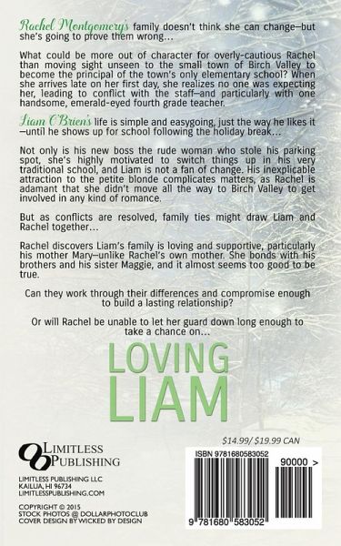 Rachel Montgomery's family doesn't think she can change-but she's going to prove them wrong... What could be more out of character for overly-cautious Rachel than moving sight unseen to the small town of Birch Valley to become the principal of the town's only elementary school? When she arrives late on her first day, she realizes no one was expecting her, leading to conflict with the staff-and particularly with one handsome, emerald-eyed fourth grade teacher. Liam O'Brien's life is simple and easygoing, just the way he likes it-until he shows up for school following the holiday break... Not only is his new boss the rude woman who stole his parking spot, she's highly motivated to switch things up in his very traditional school, and Liam is not a fan of change. His inexplicable attraction to the petite blonde complicates matters, as Rachel is adamant that she didn't move all the way to Birch Valley to get involved in any kind of romance. But as conflicts are resolved, family ties might draw Liam and Rachel together... Rachel discovers Liam's family is loving and supportive, particularly his mother Mary-unlike Rachel's own mother. She bonds with his brothers and his sister Maggie, and it almost seems too good to be true. Can they work through their differences and compromise enough to build a lasting relationship? Or will Rachel be unable to let her guard down long enough to take a chance on... Loving Liam