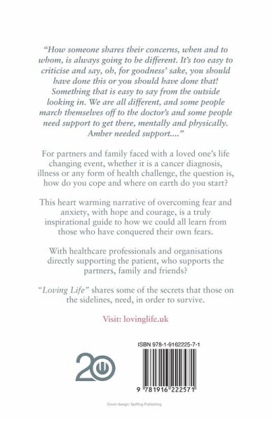 For partners and family faced with a loved one's life changing event, whether it is a cancer diagnosis, illness or any form of health challenge, the question is, how do you cope and where on earth do you start? This heart warming narrative of overcoming fear and anxiety, with hope and courage, is a truly inspirational story of how we could all learn from those who have conquered their own fears. With healthcare professionals and organisations directly supporting the patient, who supports the partners, family and friends?An inspirational insight into resilience Supporting your partner emotionally Maintaining your own wellbeing A truly candid, cancer self care book Overcoming anxieties together, when faced with a life changing event "Loving Life" shares some of the secrets that those on the sidelines, need, in order to survive.