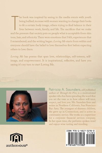 The book was inspired by seeing in the media events with youth being bullied, increase with women wanting to change their looks to fit a certain body image, others trying to find balance in their lives between work, family, and life. The sacrifices that we make and the pressure that society puts on people what is acceptable from skin tone, hair, and ethnicity. There were emotions that I felt, experiences that I remembered, and the writing began. Loving Me starts from within and everyone should have the belief to love themselves first before expecting others to love them. Loving Me has poems that span love, relationships, self-esteem, self-image, and empowerment. It is inspirational, reflective, and have you saying it's my turn to start Loving Me.
