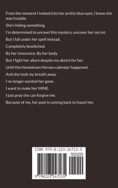 From the moment I looked into her pretty blue eyes, I knew she was trouble. She's hiding something. I'm determined to unravel this mystery, uncover her secret. But I fall under her spell instead. Completely bewitched. By her innocence. By her body. But I fight her allure despite my desire for her. Until the Hometown Heroes calendar happened. And she took my breath away. I no longer wanted her gone. I want to make her MINE. I just pray she can forgive me. Because of me, her past is coming back to haunt her. My tragic past led me to this small town. I'm determined to live the life I've been long denied. Everyone here has embraced me, made me feel welcome. Well, everyone, except him. Deputy Vargas Handsome. Distracting. And hell bent on pushing me out of town. But I refuse to submit. I refuse to go back to who I once was. He wants to be my enemy? Fine. So be it. Until I fall. Hard. For the man who wants me gone. What's a virgin to do when faced with a man like Antonio? Make him mine, of course.