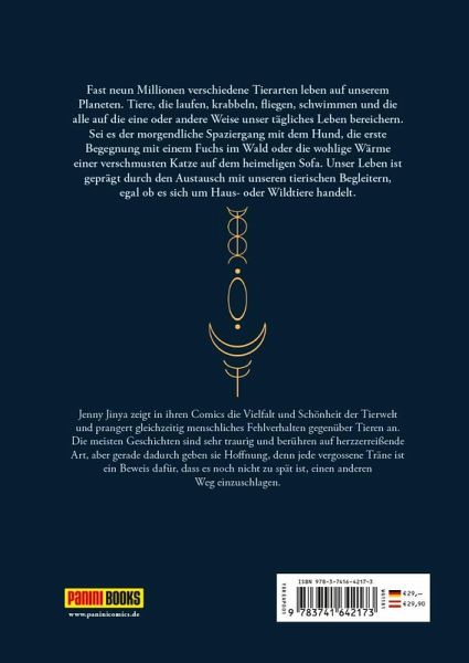 Fast neun Millionen verschiedene Tierarten leben auf unserem Planeten. Tiere, die laufen, krabbeln, fliegen, schwimmen und die alle auf die eine oder andere Weise unser tägliches Leben bereichern. Sei es der morgendliche Spaziergang mit dem Hund, die erste Begegnung mit einem Fuchs im Wald oder die wohlige Wärme einer verschmusten Katze auf dem heimeligen Sofa. Unser Leben ist geprägt durch den Austausch mit unseren tierischen Begleitern, egal ob es sich um Haus- oder Wildtiere handelt. Jenny Jinya zeigt in ihren Comics die Vielfalt und Schönheit der Tierwelt und prangert gleichzeitig menschliches Fehlverhalten gegenüber Tieren an. Die meisten Geschichten sind sehr traurig und berühren auf herzzerreißende Art, aber gerade dadurch geben sie Hoffnung, denn jede vergossene Träne ist ein Beweis dafür, dass es noch nicht zu spät ist, einen anderen Weg einzuschlagen.