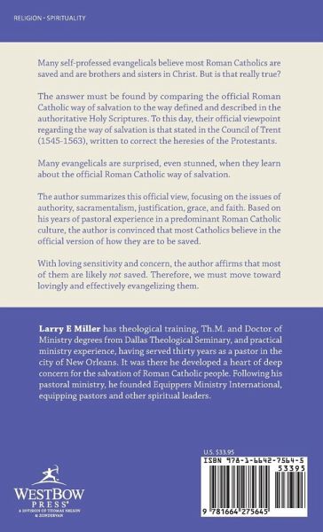 Many self-professed evangelicals believe most Roman Catholics are saved and are brothers and sisters in Christ. But is that really true? The answer must be found by comparing the official Roman Catholic way of salvation to the way defined and described in the authoritative Holy Scriptures. To this day, their official viewpoint regarding the way of salvation is that stated in the Council of Trent (1545-1563), written to correct the heresies of the Protestants. Many evangelicals are surprised, even stunned, when they learn about the official Roman Catholic way of salvation. The author summarizes this official view, focusing on the issues of authority, sacramentalism, justification, grace, and faith. Based on his years of pastoral experience in a predominant Roman Catholic culture, the author is convinced that most Catholics believe in the official version of how they are to be saved. With loving sensitivity and concern, the author affirms that most of them are likely not saved. Therefore, we must move toward lovingly and effectively evangelizing them.