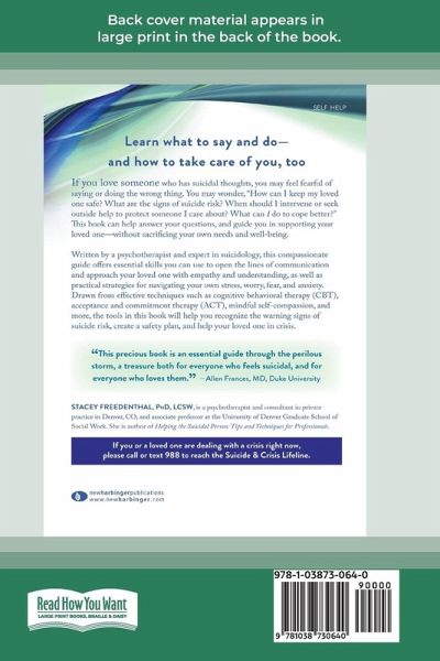 If you have a loved one who is experiencing suicidal thoughts, you may feel deeply afraid-both of loss and of saying the wrong thing and making matters worse. Based on decades of clinical experience in suicidology, this compassionate guide gives readers the essential communication techniques and coping skills they need to support a loved one in crisis, while also taking care of themselves.