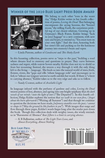 Winner of the 2020 Blue Light Press Book Award We belong to each other "even in the worst day," Helga Kidder writes in her fourth collection of poems, Loving the Dead. That belonging encompasses the arcing heavens, the "bruised moon," the trilling Earth, the sometimes prideful tug of our closest relations. Growing up in Germany’s Black Forest, Kidder brings "luck in [my] luggage" to a new continent, with new eyes and hopes, to remind us, "You must turn on your own light." And she does, honoring both her sister’s life and packing us for the luminous journey into memory’s beam and vapor. About the Author Helga Kidder is a native of Germany’s Black Forest region and lives in the Tennessee hills with her husband. She was awarded an MFA in Writing from Vermont College. She is co-founder of the Chattanooga Writers Guild and leads their poetry group. She has participated in workshops in San Francisco, CA, Rockvale, TN, and Auvillar, France. Her poems have been published in many journals and anthologies. She has three poetry collections, Wild Plums (2012 Finishing Line Press), Luckier than the Stars (2013 Blue Light Press), and Blackberry Winter (2016 Blue Light Press).